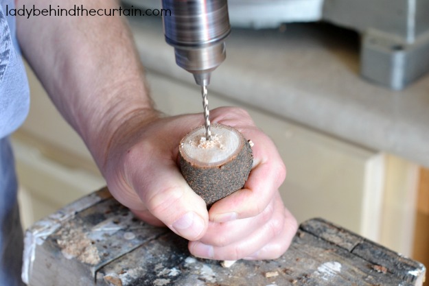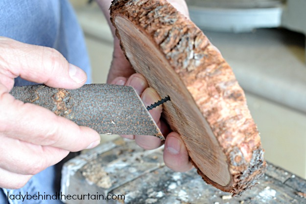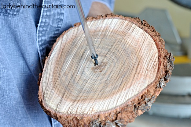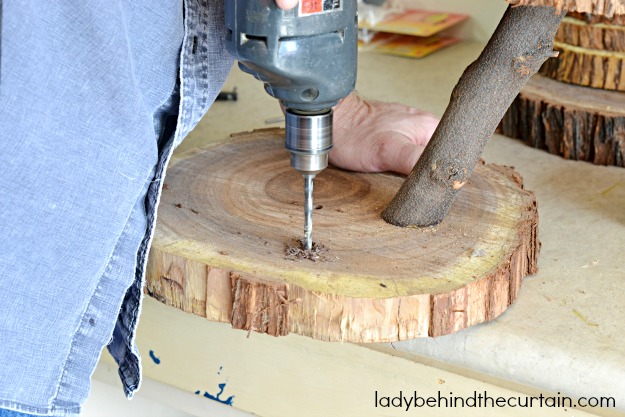 Drill holes in the disks. THIS IS VERY IMPORTANT! The holes you drill in the disks should be big enough for the screws to slip all the way through BUT…the holes you drill in the branches should be slightly smaller than the size of your screws. This will give the screws something to hold onto as they are being screwed into the branches.
