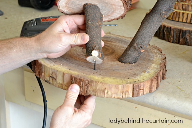 Once you have all the branches matched up with the disks and have all your holes drilled it’s time for assembly. Attach the disk to the branch.